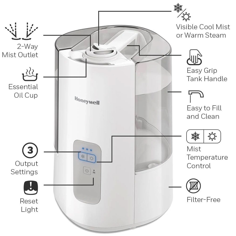 Honeywell Dual Comfort Cool + Warm Mist Humidifier, White Reviews