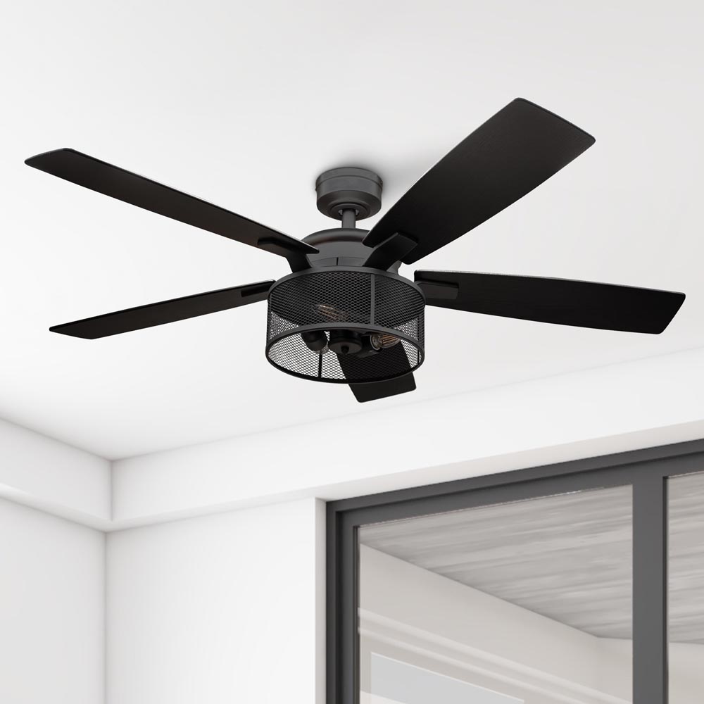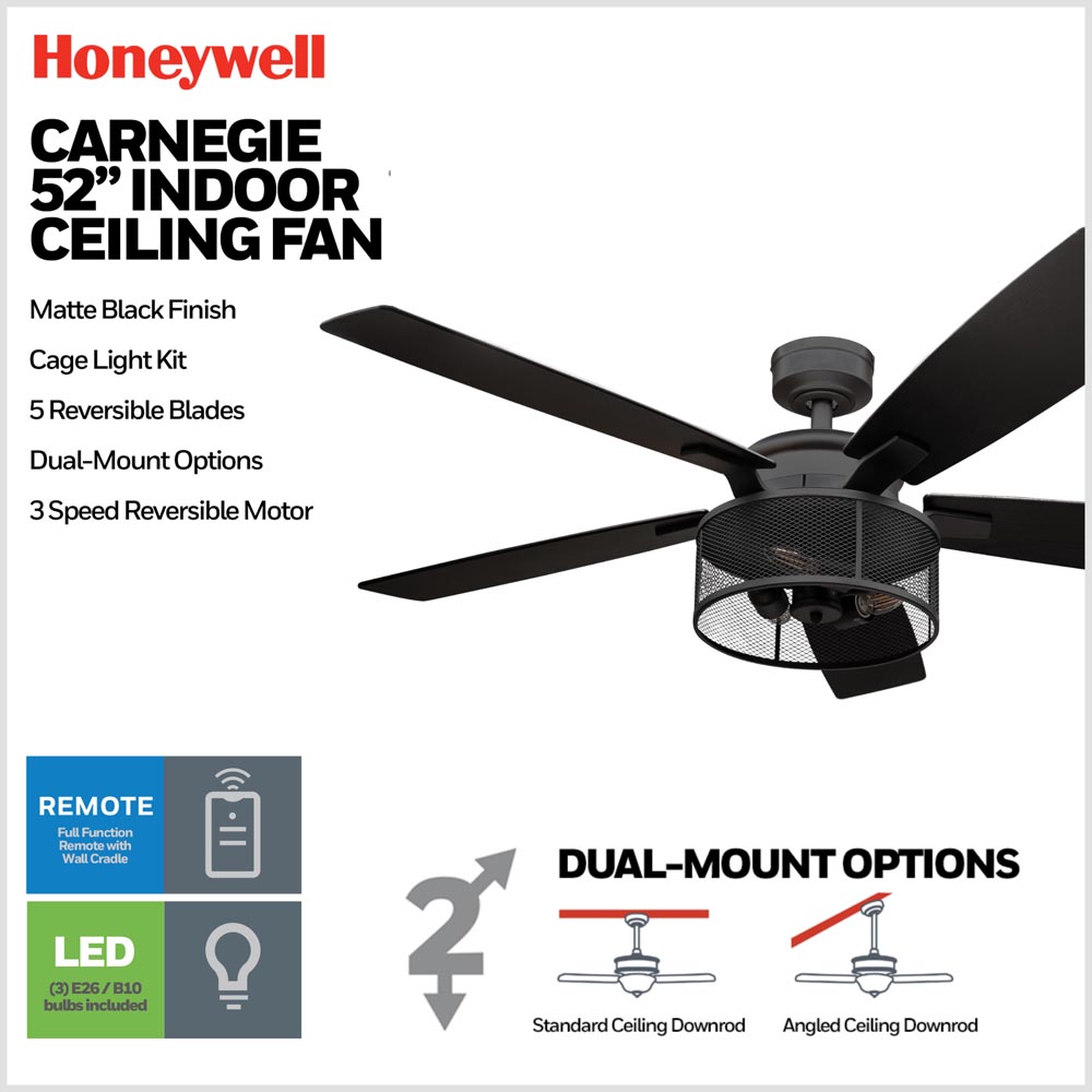 Honeywell Carnegie Ceiling Fan with Light, 52 Inch, Matte Black - 51928