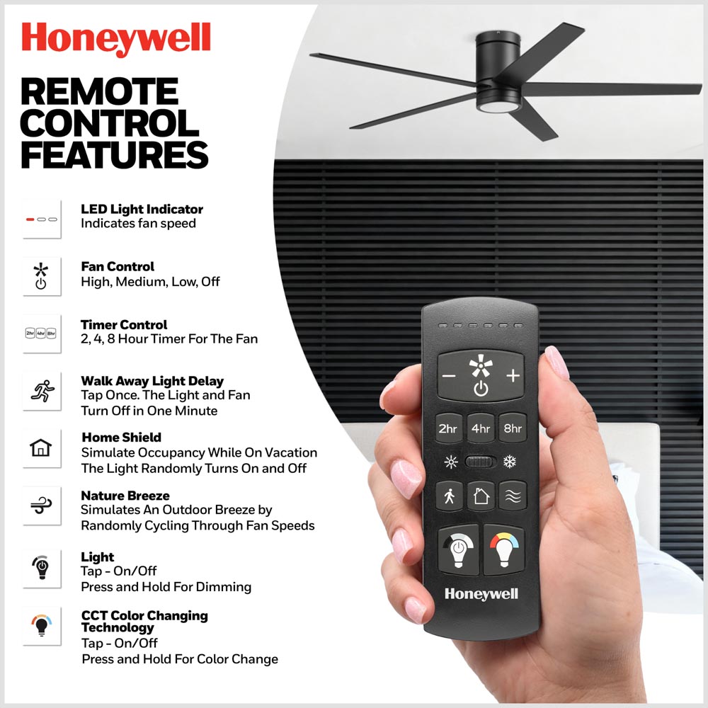 Honeywell Graceshire Ceiling Fan with Light, 60 Inch, Matte Black - 53052