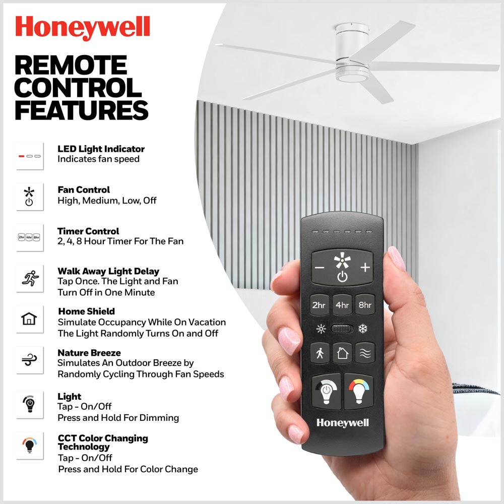 Honeywell Graceshire Ceiling Fan with Light, 60 Inch, White - 53054