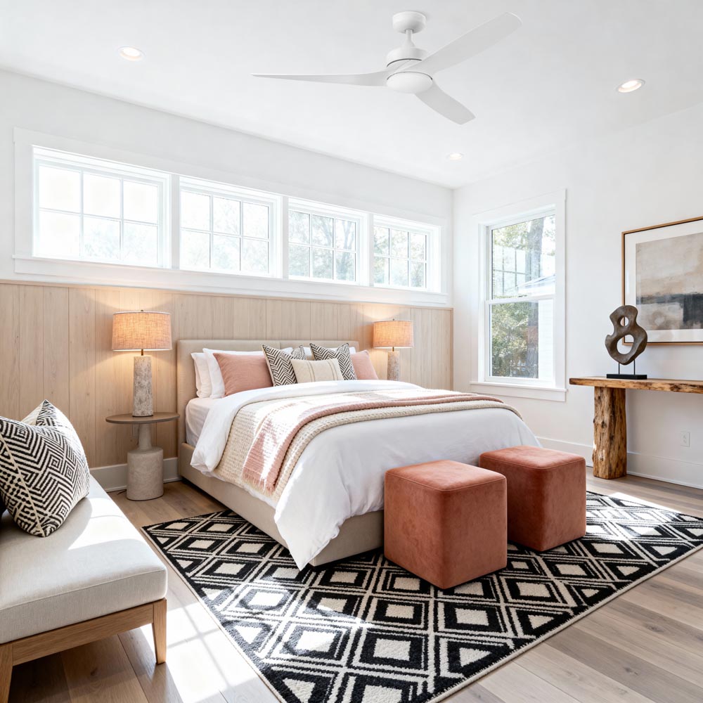 - 6 speed reversible DC motor for efficient, whisper-quiet airflow