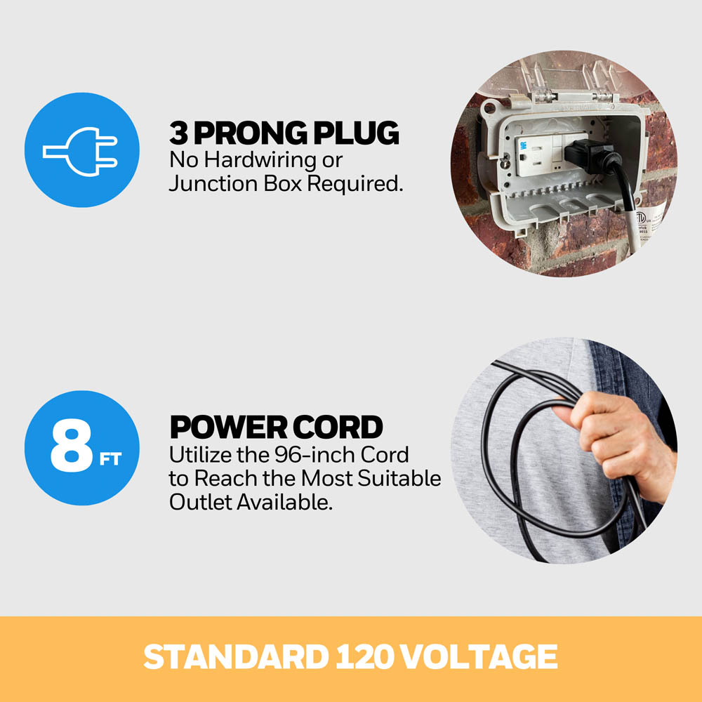 - Damp-Rated Design: Designed to withstand the elements, this fan features durable construction, making it ideal for use in covered outdoor areas, garages, workshops, and any space exposed to moisture.