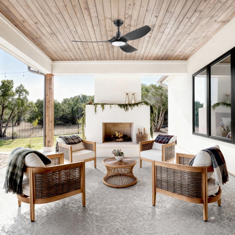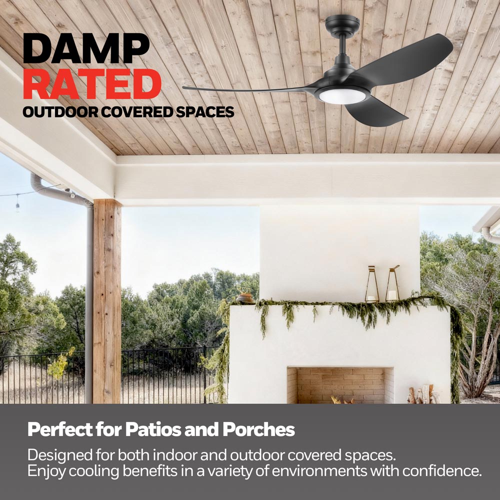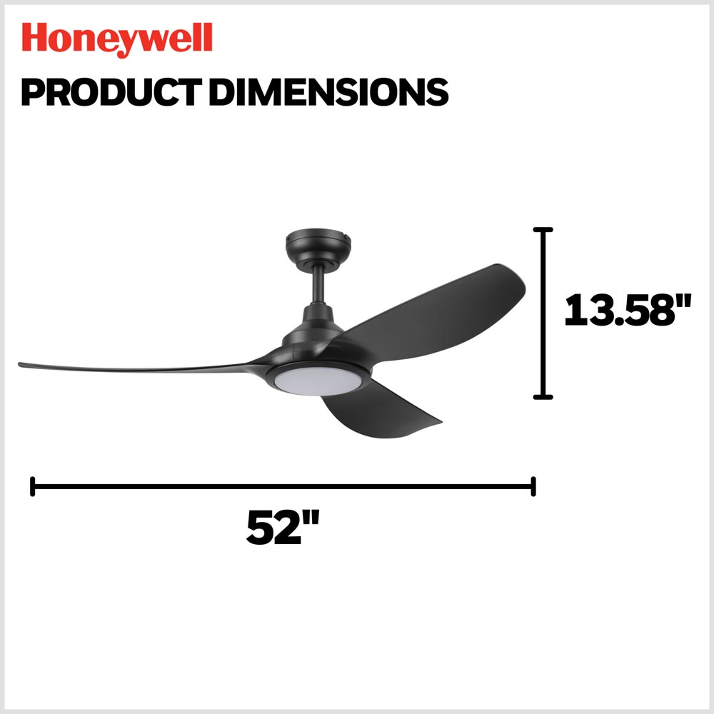 Honeywell Sirro Indoor or Covered Outdoor Ceiling Fan with Adjustable LED Light, 52-Inch, Matte Black - 53026-03