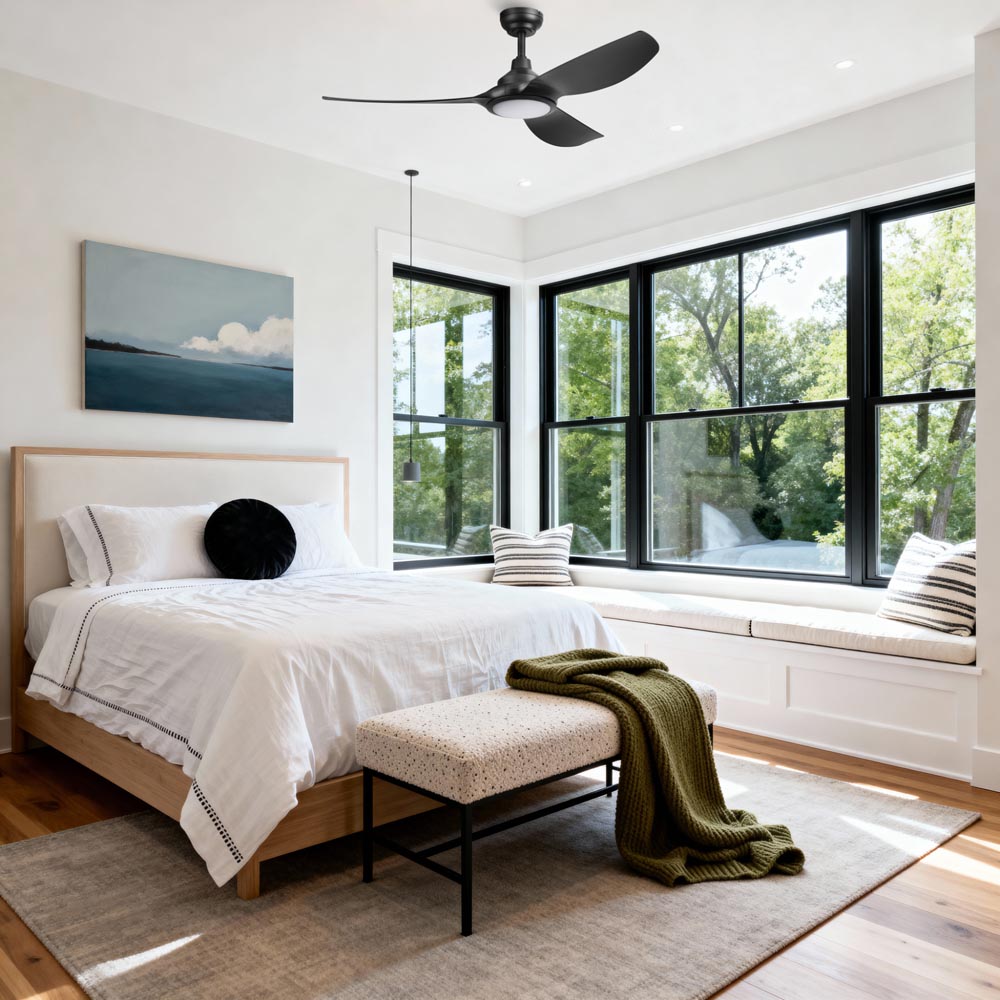 Powered by a 6-speed brushless DC motor, Sirro provides whisper-quiet operation and energy-efficient performance, delivering powerful circulation while reducing energy consumption. The integrated LED light kit offers 2,000 lumens of illumination with adjustable color temperature from warm 2200K to crisp 6500K and smooth dimming from 100% to 10%.